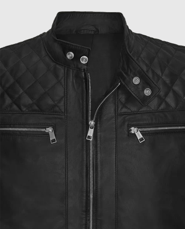 Channel Jason Statham’s fearless style with this Expendables 4 Leather Jacket, inspired by his role as Lee Christmas in the following action-packed movie. This jacket is designed to bring the thrill of Hollywood stunts to your wardrobe, featuring quilted shoulder panels that add a tactical, rugged edge to its sleek design. It’s crafted from premium sheepskin leather, making it durable and stylish. The jacket includes a zipper closure, a snap-tab collar, and full-length sleeves with button cuffs for a polished fit. It’s both functional and fashionable, with two chests and two side pockets. Finished in a classic black color, this jacket is perfect for fans of action movies or anyone looking to make a bold statement.