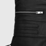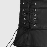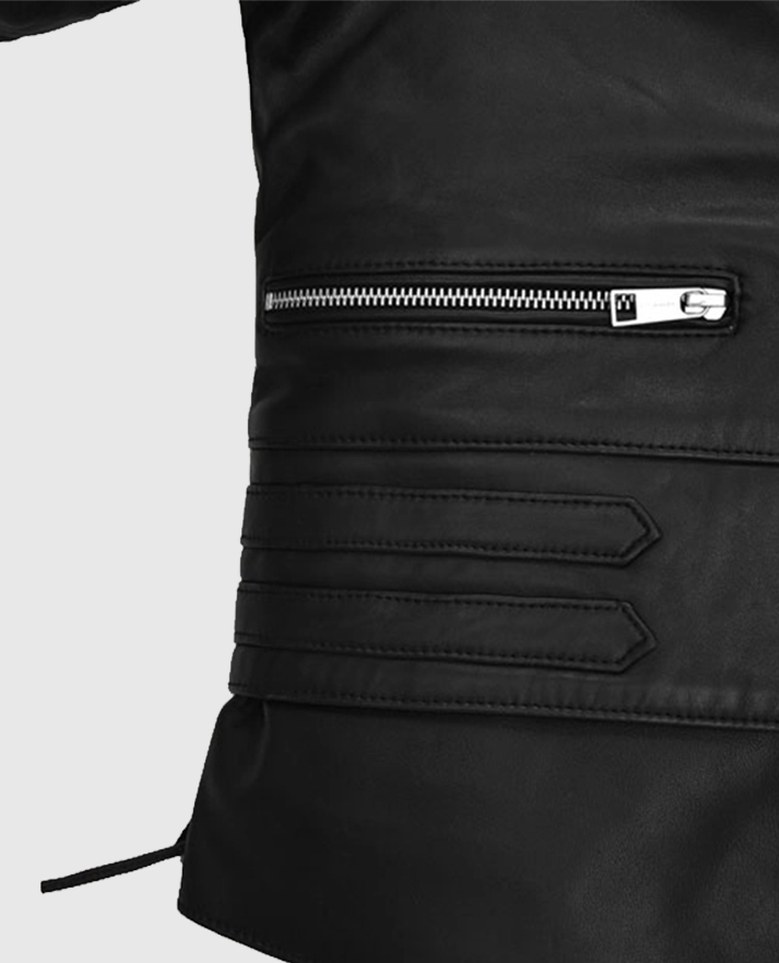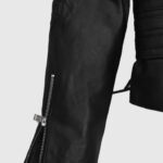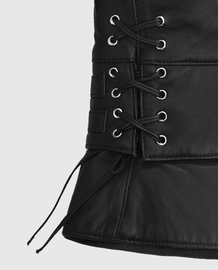 Grunge meets glam in this fierce black biker jacket, inspired by Kristen Stewart’s effortlessly rebellious look during a promotion at Comic-Con. Made from pure sheepskin leather with a soft viscose lining, it blends comfort with pure edge. The asymmetrical zip closure, sleek round collar, and quilted shoulders give it a striking silhouette, while chrome-finished zippers on the chest and waist bring that signature rocker vibe. Corset-style lace-up detailing at the waist gives the jacket a fitted form. Elongated panel cuts with accent stitching create a tailored fit. Perfect for night drives, gigs, indie cafe’s, or when you want to make a statement without saying a word.