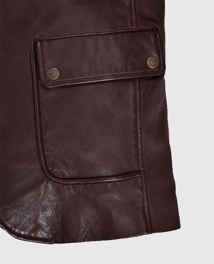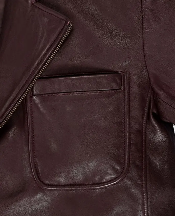 Step into the spotlight with this leather blazer, a timeless piece that exudes style and sophistication. Inspired by Robert Downey Jr.’s iconic look during his visit to the luxury Belstaff boutique in Rome. This blazer is crafted from premium sheepskin leather. The soft viscose lining provides ultimate comfort, while the asymmetrical zipper closure and lapel-style collar deliver a modern, edgy vibe. Designed with long sleeves, open hem cuffs, and multiple pockets, it perfectly balances functionality and fashion. The rich burgundy color adds a touch of luxury, making it an ideal choice for any occasion.