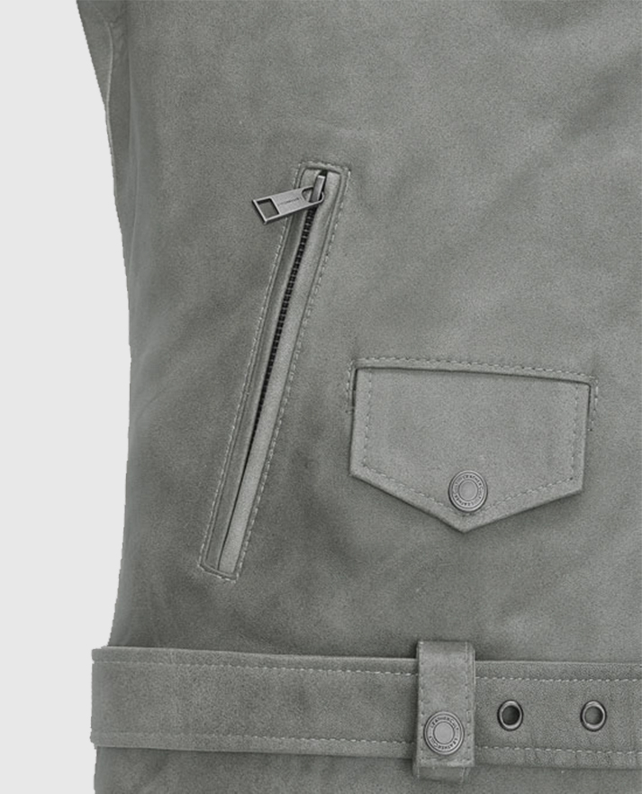 Women’s Gray Suede Biker Leather Jacket is your go-to outerwear piece for those who lean into a cool look. Tailored from rich suede leather in a serene gray tone. The asymmetrical front zip closure and notch lapel collar give it that iconic biker vibe, while full-length sleeves with zipper cuffs keep the attitude alive. Designed with a mix of functional pockets for practicality and soft viscose lining ensures all-day comfort, making this jacket as wearable as it is stunning.