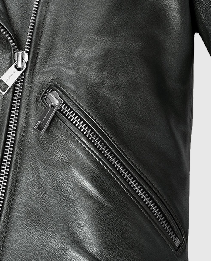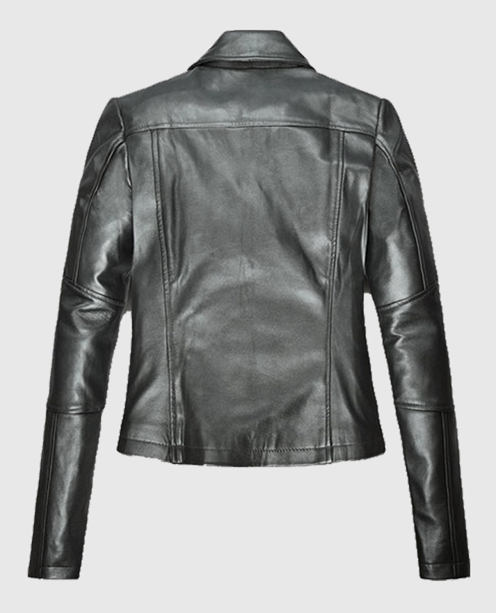 The Women’s Helena Metallic Gray Biker Leather Jacket is a head-turning essential for women. Made from premium sheepskin leather with a soft viscose lining and features asymmetrical zipper closure, notch lapel collar, full-length sleeves and clean round cuffs maintain a refined silhouette. Featuring two slanted zipper pockets at the waist for utility and flair, its shimmering metallic gray tone adds a futuristic twist, making this the ultimate jacket to elevate your street-style or night-out ensemble.